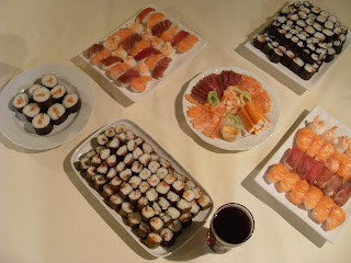 dieses mal in recht großer Runde gab es leckeres selbstgerolltes Sushi..
