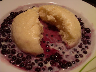 also hab ich nicht nur meine geliebten Heidelbeeren dazu gemacht (normale Heidelbeeren aus dem Glas mit ein bisschen Speisestärke angedickt), sondern auch noch Pflaumen (aus dem Glas) besorgt und eine Vanillesoße gekocht.. wir haben früher immer noch zerlassene Butter mit Zucker und Zimt dazu gegessen..