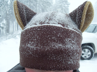 ich liebe diese Mütze einfach! nie kalte Ohren! obwohl sie so eingeschneit sind.. ![]()