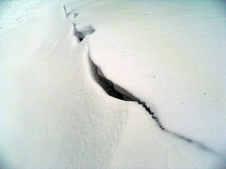 auch sehr interessant fand ich die Risse in der Schneedecke, die immer mal am Wegesrand zu finden waren.. die sehen immer so nach Mini-Gletscherspalte aus, oder?