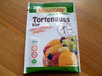 ein Tortenguss ohne Zucker von Biovegan.. entdeckt hab ich den im Lebensladen hier in Erfurt.. in diesem Bioladen stöber ich schon seit einer Weile immer mal durch die Regale und nun hab ich mich doch mal getraut auch was zu kaufen..
