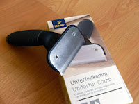 so ein Unterfellkamm hilft bei Tieren, die eine dichte Unterwolle haben, diese während dem Fellwechsel schnell und effektiv aus dem Fell zu bekommen.. ich kannte solche Dinger bis jetzt nur von amerikanischen Firmen mit furiosen Namen und abartigen Preisen (40€ für einen Kamm!).. somit war der Entschluss diesen hier mitzunehmen schnell gefasst..