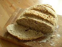 für zwei Brote wird ein viertel Würfel Frischhefe (etw. 15g) in 300ml warmen Wasser mit einem Teel. Zucker aufgelöst.. anschließend werden 300g Vollkornmehl und 200g Weizenmehl mit einem Teel. Salz vermischt und die flüssige Hefe kommt dazu.. alles schön verkneten und warm gehen lassen, bis sich der Teig merklich vergrößert hat.. (kann unter Umständen recht lange dauern, mein Teig durfte etwa 3 Stunden gehen)