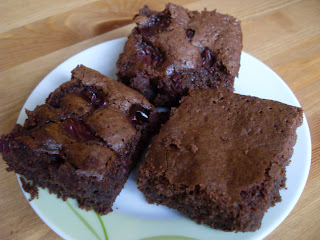 ich hatte meine Brownies zur Hälfte mit Kirschen und zur Hälfte ohne gebacken, daher ist auf dem Foto beides zu sehen..